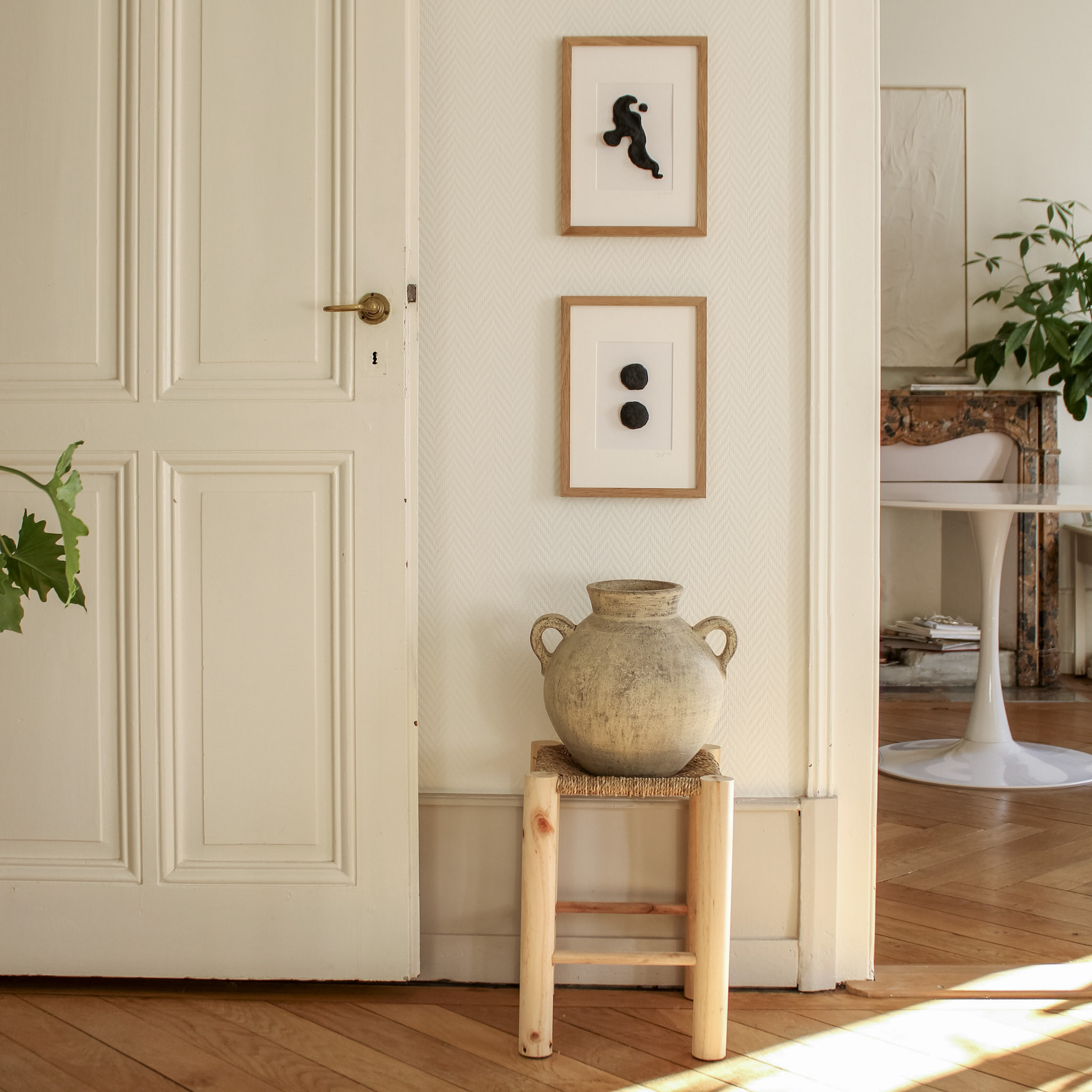 Schwarz, Weiß und Holz – ein klassisches Ensemble, das immer passt. Dem graphischen Schwarz-Weiß-Kontrast werden natürliche Formen und Materialien entgegengesetzt. Durch die besondere Oberflächestruktur wird dieses Ensemble zu einem Blickfang, der sich nahtlos in viele Einrichtungsstile integrieren lässt.