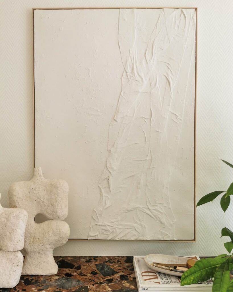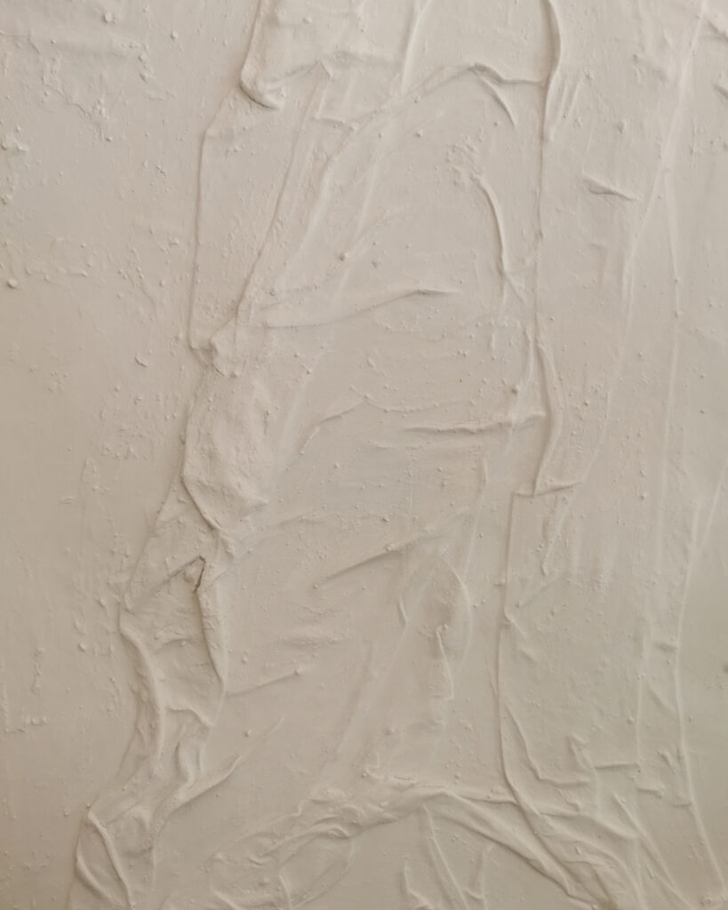 Jeder kennt ihn, diesen Moment des Schwimmens – das Gefühl der Ungewissheit. Floating fängt diesen Schwebezustand mit einer minimalistischen Struktur ein, die von oben nach unten über das Bild fließt. Das Kunstwerk verdeutlicht, dass alles im Fluss ist und erinnert im Alltag daran, dass Zustände sich wieder ändern. Die neutrale Farbgebung in Wollweiß verstärkt den Fokus auf die Struktur des Materials und bringt Ruhe und Gelassenheit in jeden Raum.