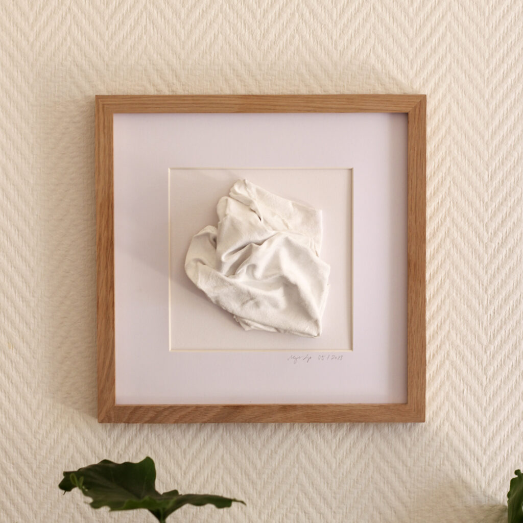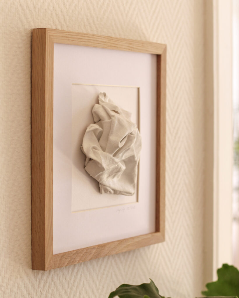 „Klein, aber fein“ trifft auf dieses Werk bestens zu. Denn die abstrakte, dem menschlichen Herz ähnliche Form aus gehärtetem Stoff benötigt weder Größe noch Farbe, um den Raum im Sturm zu erobern.