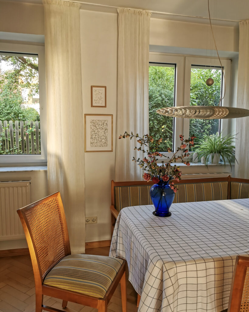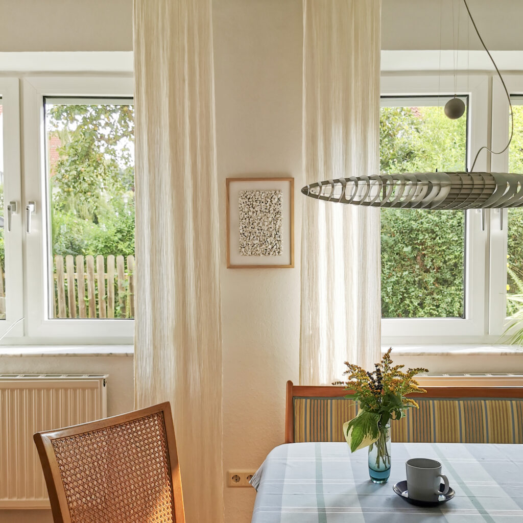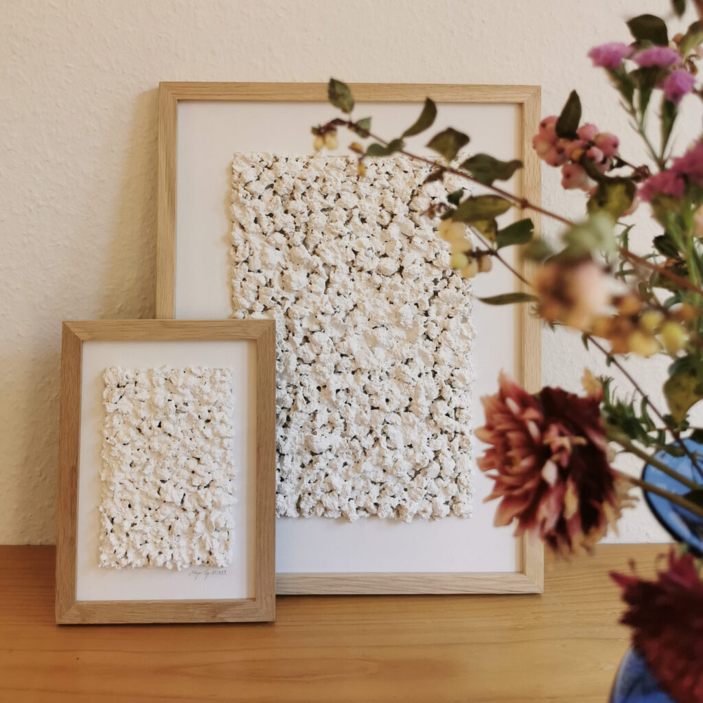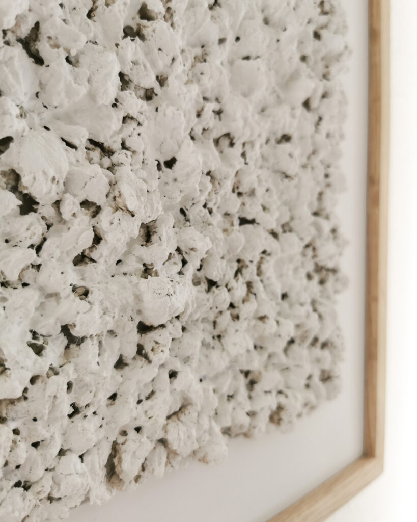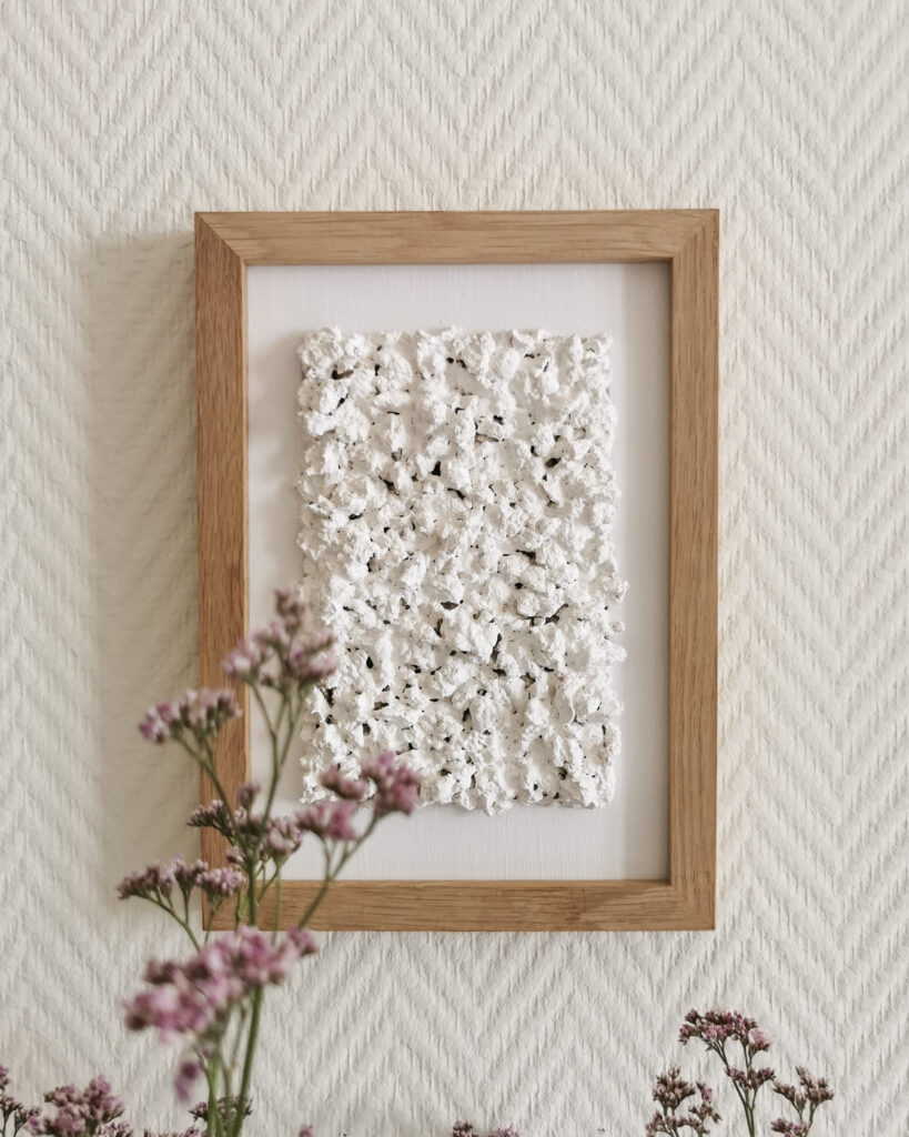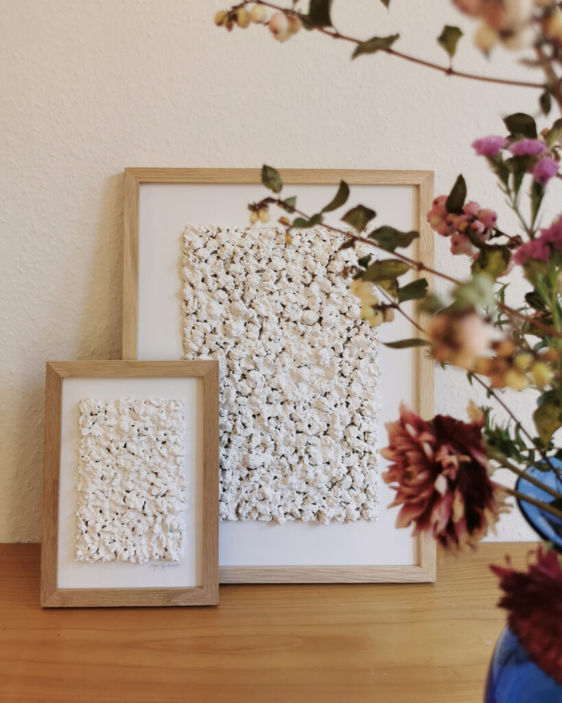 In einer speziellen Technik geformte und gehärtete Papierkugeln erstrahlen in zeitlosem Weiß. So entsteht ein stark strukturiertes Gesamtkunstwerk, das minimalistisch und elegant, aber voller Charakter daherkommt – wie eine Parisienne!